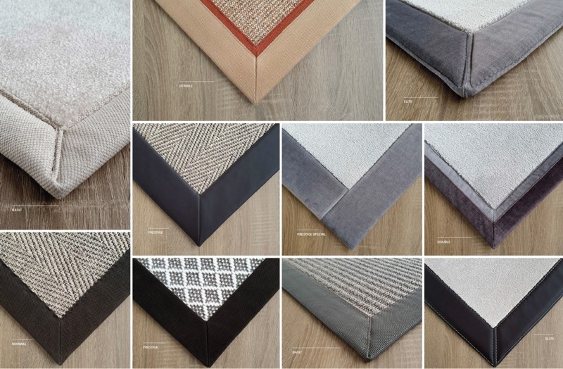 Estes são os diferentes tipos de aplicação de banda que poderá utilizar na personalização do seu tapete.